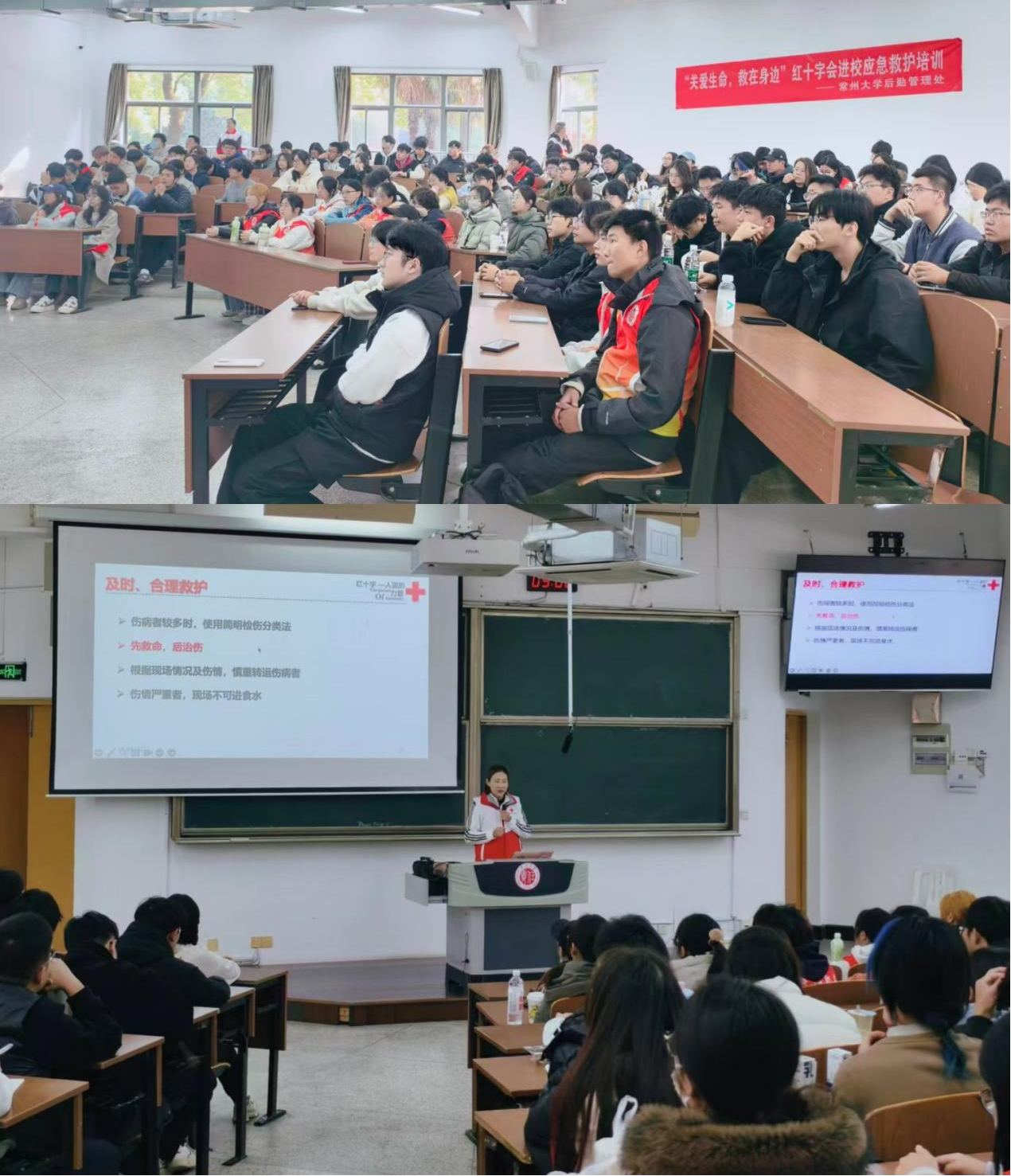 为提升师生应急救护能力、筑牢校园安全防线,11月22-23日及11月29-30日,我校联合常州市红十字会在科教城校区及西太湖校区分别开展应急救护初级救护员培训。本次培训特邀市红十字会资深讲师团队授课,采用“理论精讲+实操演练”模式,820名师生及重点人群全程参与学习,系统掌握实用急救技能,均顺利通过考核并取得证书。