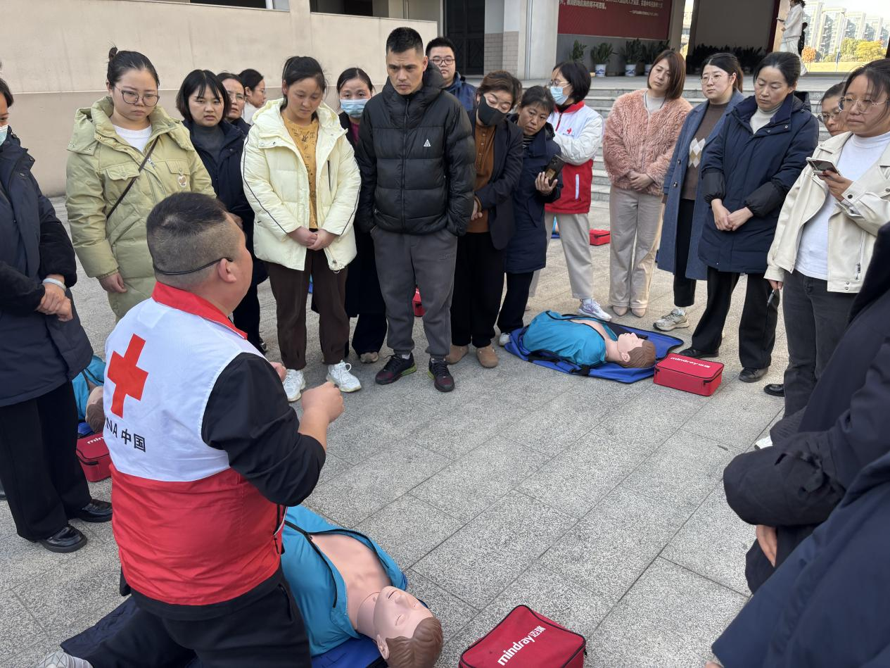 培训过程紧扣校园突发场景急救需求。理论教学环节,讲师结合真实案例,深入浅出讲解心肺复苏(CPR)原理、自动体外除颤器(AED)使用规范及创伤救护基础知识,重点强调“黄金四分钟”施救的关键意义。实践操作中,讲师采取手把手教学,依托模拟人模型示范胸外按压、人工呼吸等标准化动作,逐一对学员按压深度、频率等细节问题进行纠正;针对创伤救护(外出血的止血与包扎)技能,现场演示螺旋包扎、“8”字包扎等方法及三角巾应用技巧,指导学员结合不同伤情灵活选择并规范操作。参训师生专注投入练习,主动请教操作难点,现场学习氛围浓厚。培训尾声的考核环节,通过“理论测试+实操演练”相结合的方式检验学习成效,确保学员切实掌握急救技能。
